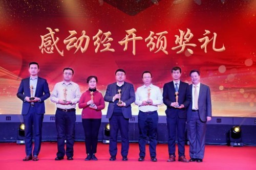 答谢会的另一重要环节是“2019年度感动经开”颁奖典礼。此前,经开区与德勤中国共同评选出“2019亦庄高科技、高成长”和“明日之星”企业榜单,北京经开产业园区内有六家企业成功入选。北京经开党委书记、总裁周世义为这六家企业代表颁发了奖杯,感谢他们为北京经开园区带来的骄人荣誉。同时,北京经开设置了“园区经济贡献奖”,评选出园区内为区域经济发展做出卓越贡献的八家企业,邀请亦庄控股集团党委委员、纪委书记王佃宝为获奖企业颁奖。两个奖项的获奖企业包括:森特士兴集团股份有限公司、诺兰特移动通信配件(北京)有限公司、北京集创北方科技股份有限公司、北京诺康达医药科技股份有限公司、北京天地祥云科技有限公司、未来(北京)黑科技有限公司、北京同仁堂健康药业股份有限公司、长城超云(北京)科技有限公司、格拉默汽车内饰部件(北京)有限公司、特斯拉汽车销售服务(北京)有限公司、北京酒仙网络科技有限公司、宁夏西云数据科技有限公司北京分公司。