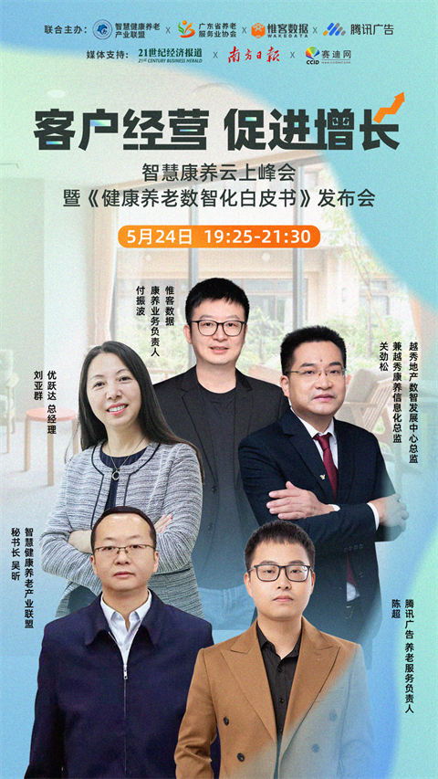 日前,由智慧健康养老产业联盟、广东省养老服务业协会、惟客数据和腾讯广告联合主办的《“客户经营 促进增长”智慧康养云上峰会》圆满落幕,多位行业专家、企业养老负责人通过云上见面形式共同探讨养老新政策、产业新趋势、智慧养老信息化实践等议题。同时,惟客数据也在峰会上发布了与21世纪经济报道联合编写的《健康养老数智化白皮书》。