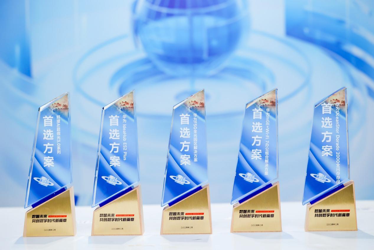 现场展示的华为“首选方案”产品/方案有:华为mGE+Wi-Fi 7办公组合解决方案、华为F5G全光园区解决方案、华为OceanStor Dorado 2000全闪存存储、华为IdeaHub ES2 Plus和好望AI超微光3.0系列;