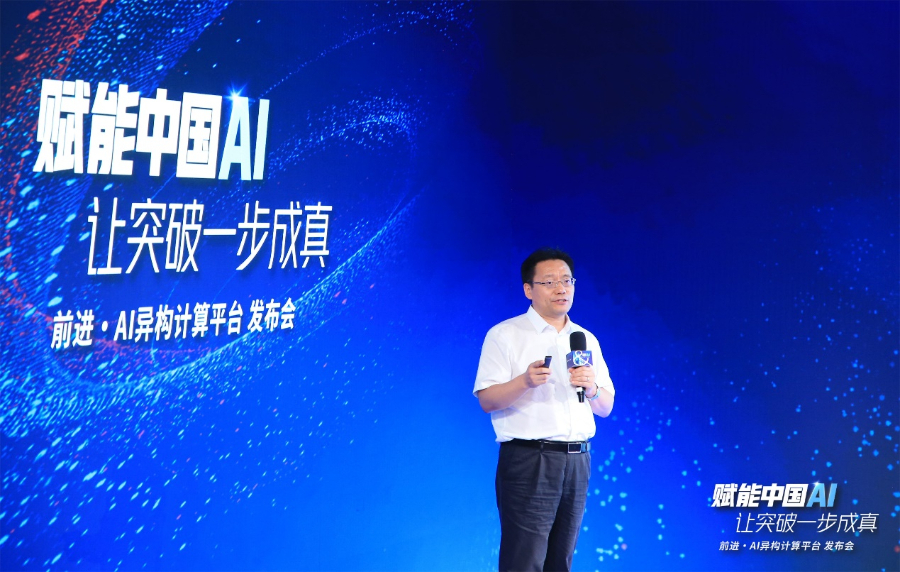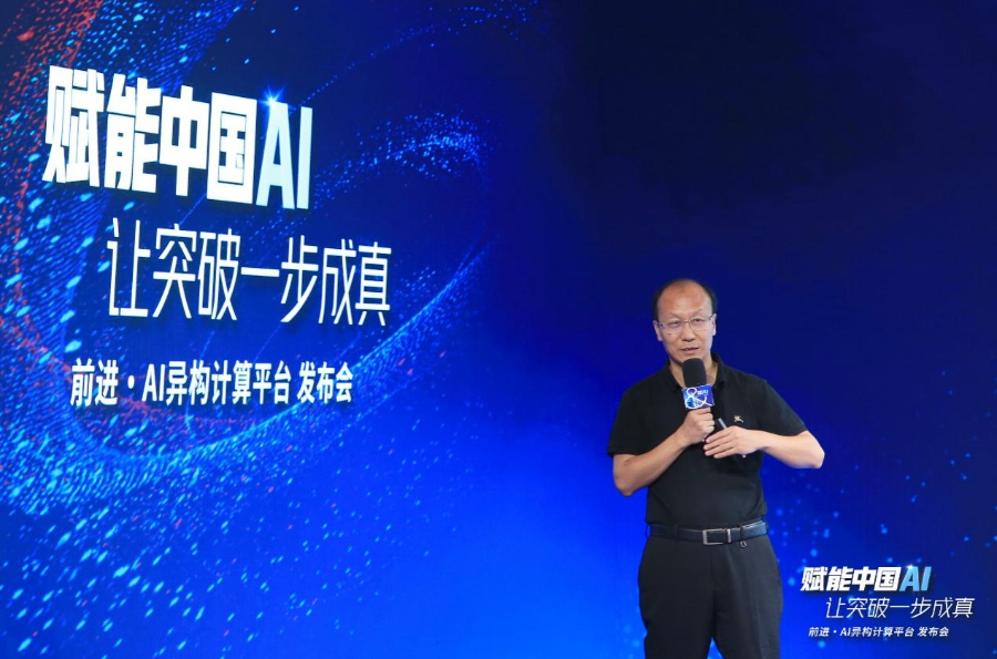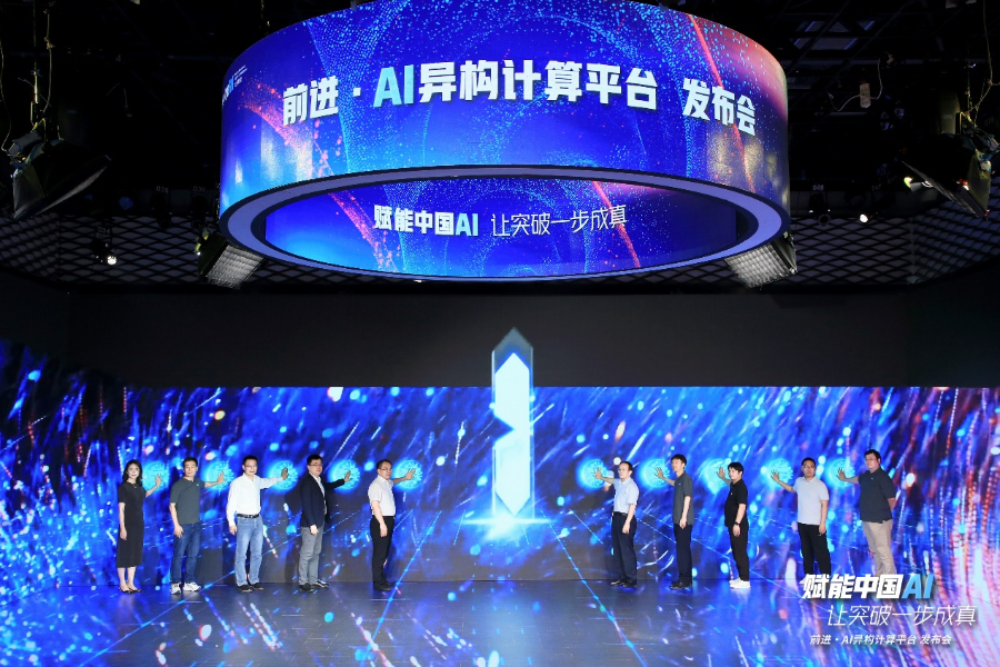 本次活动以“赋能中国AI,让突破一步成真”为主题,聚焦人工智能、国产芯片等领域发展的新机遇、新技术和新成果,为加速国产AI芯片破局、打造开放生态探寻新思路,为数字中国建设贡献智慧和力量。会上发布的前进·AI异构计算平台,作为首个大规模国产多芯混元集群,供应算力、联力、生态力和供力四力协同感知的高性能计算服务,将加速实现算力普惠,助推新质生产力发展。
