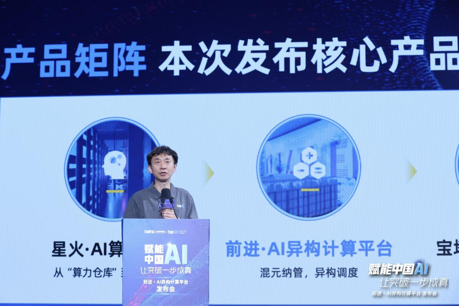 北京电子控股有限责任公司总经理李前在致辞中表示,当前北京电控正深入推进“一二一一”核心战略,旗下北电数智作为电控数字服务产业平台,以算力、算法和数据服务为抓手,大力推进数字经济算力中心、AI异构计算平台等北京市重点项目建设,为国家人工智能产业的发展以及北京全球数字经济标杆城市建设作贡献。本次发布的“前进”平台凭借混元异构的核心技术,能激发不同国产算力在多种应用场景下发挥巨大潜力,实现更高效、更高性价比的算力供给,为“重新塑造国产芯片的竞争力、推动国产芯片实现全面提升”的战略目标贡献更大力量。