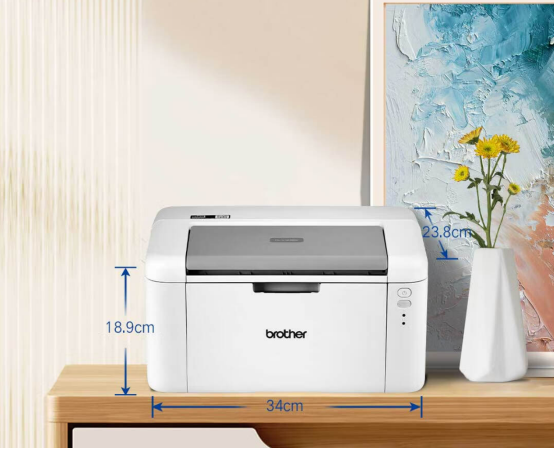 在外观设计上,Brother HL-L1238W打印机表现颇为出色。它拥有小巧玲珑的机身,尺寸长340mm、宽238mm、高189mm,重量仅为4.6kg,整机只占 0.08 平方米,比一张A4纸大不了多少,女生也能轻松搬运。这样的设计使得它可以轻松地放置在学生的书桌旁或家庭的任何角落,不占用过多空间。简约时尚的外观和百搭的颜色选择也能与各种学生家庭的装修风格相融合,增添一份科技感与现代感。无论是现代简约风、北欧风还是田园风,这款打印机都能完美融入其中,成为家居装饰的一部分。