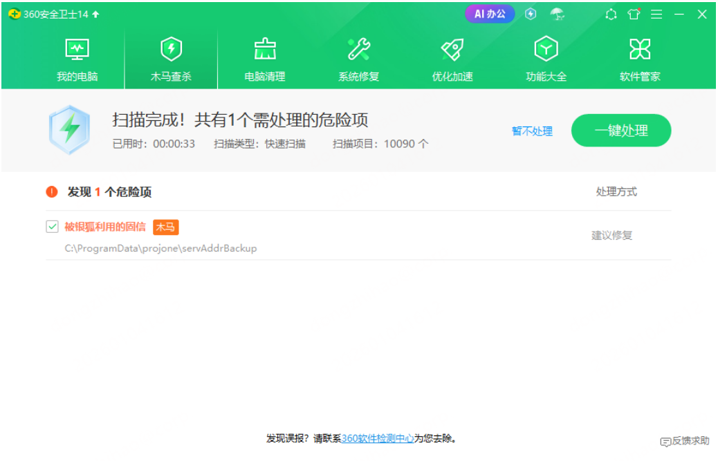 在终端处置环节,360云安全立体防护体系中的远控·勒索急救模式展现强大应急响应能力。该模式可一键切断攻击者控制通道,为深度清理争取宝贵时间窗口。此外,该体系不仅支持对各类驱动级木马的清理、对被篡改的系统配置进行修复,也支持对被银狐木马利用的合法管理软件的智能检测与卸载。