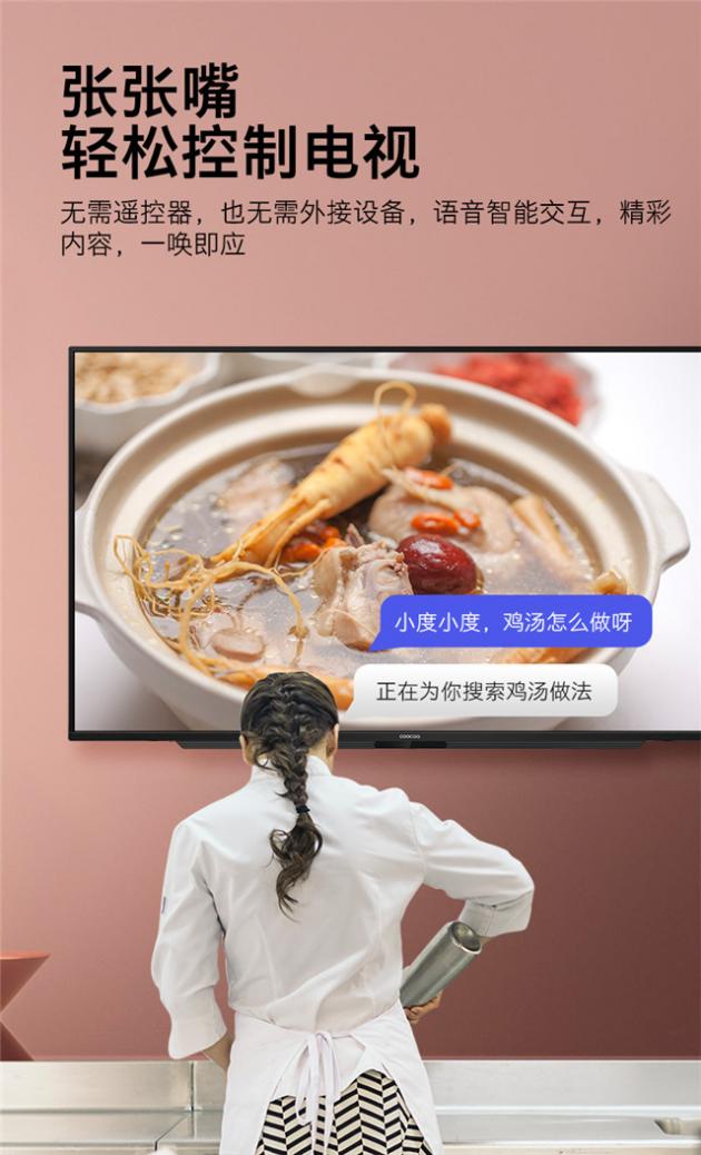 智能电视虽然具有丰富的内容资源,但要找出想听想看的内容,往往不是件容易的事。通常情况下,用户只能通过遥控器按键输入字符或汉字来检索内容,这样过于繁琐的步骤给大多数用户造成麻烦。酷开P50的远场语音声控功切实解决了这部分用户的烦恼,它具备10米内远距离收音以及180度全方位识别的神技,用户无需再站在电视面前使用遥控器操控电视,在房间任何角落都可对电视下达语音遥控指令,酷开P50都听得到。与此同时,酷开P50还在原有AI功能的基础上进行了唤醒功能的技术提升:融入百度智能语音深度优化算法的酷开P50,即使电视处于黑屏状态也能马上智能感知。设想一下,当下班回家后想做一顿好吃的犒劳自己又苦于不知道正确方法的时候,只要说一句“小度,小度,鲜椰鸡汤怎么做”,P50将立刻搜索鸡汤做法并呈现在大屏幕上,免除遥控器的束缚,轻轻松松,边看边学,真正做到听你又懂你。