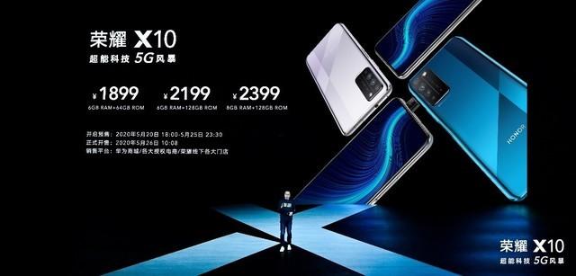 荣耀X10首发价格为6GB+64GB版本1899元,6GB+128GB版本2199元,8GB+128GB版本2399元,并有竞速蓝、探速黑、光速银、燃力橙四种配色供选。目前已经启动预约,5月26日将在华为商城、各大授权电商平台、荣耀线下各大门店正式开售。