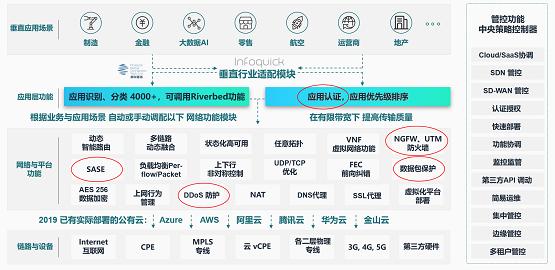 · 关注是否具备安全合规功能。成熟的SD-WAN产品具备较强的软防火墙功能,如图中显示的NGFW与UTM,同时包括数据加密能力。以下详细介绍新一代SD-WAN安全能力,SASE