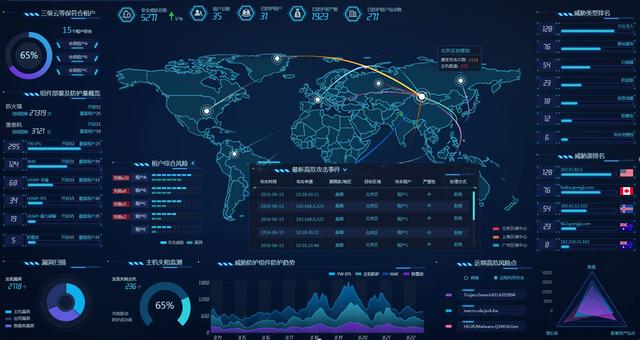 与此同时,奇安信云安全管理平台可以通过部署独立资源池无缝接入到用户的网络中,也可以将安全组件部署在用户云平台VPC内,并基于可视化技术,为客户提供包括攻击地图、威胁类型及来源、安全组件防护效果、攻击行为趋势等信息,全方面展示网络安全态势。