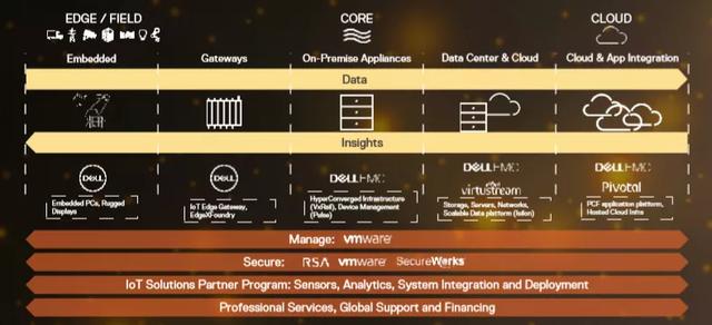 戴尔数字城市体系结构能确保物联网用例能够端到端地实施,下图概述了戴尔能够在整个物联网连续体中提供产品和解决方案的组合。
