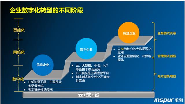 对于智慧企业理解,王兴山也指出智慧企业是以AI为核心的大数据深化应用,数据从附属产物转变为重要的生产要素,并通过大连接从局部孤岛走向系统贯通,数据驱动、智慧决策是关键特征;在该阶段,企业不仅着力于降本增效,更强调企业形态的根本性变革,以及在"技术+管理"双驱动下的数字化管理、网络化协同等新模式以及零工经济、共享制造等新业态铸造。