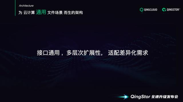 黄蒙认为,拥有通用的标准文件接口,拥有多层次的扩展性,可以同时适配差异化的文件存储需求是QingStor文件存储2.0版本要具备的三个能力。并且,在设计这款产品时,首先确定的是希望打造一款云计算基础架构下,更加通用的文件存储产品,这与青云QingCloud作为一家云计算科技公司的使命和基因是分不开的。