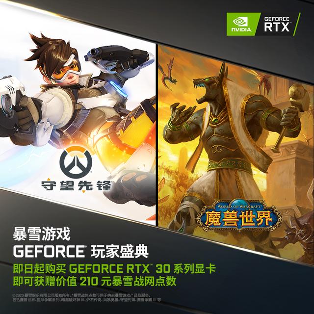 2020年9月17日- 2020年11月9日,NVIDIA将携手华硕启动"暴雪战网点数捆绑活动",购买GEFORCE 新一代安培架构显卡, 可获赠价值210元人民币的暴雪游戏点数,玩家可以用于《魔兽世界》、《守望先锋》、《暗黑破坏神III》、《星际争霸II》、《星际争霸:重制版》、《风暴英雄》和《炉石传说》等多款游戏,享受各种角色服务以及购买虚拟道具!