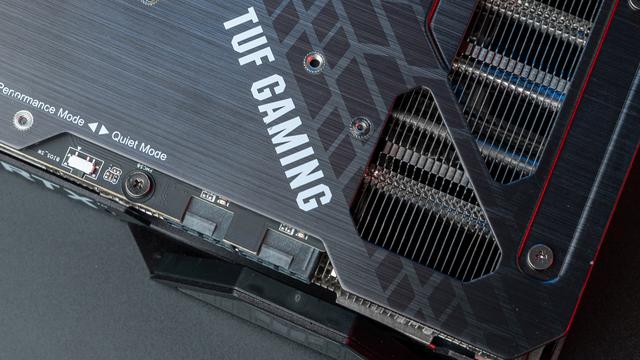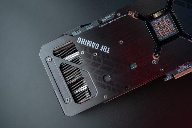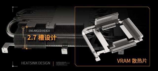 显卡的散热将热量传递到2.7槽超大散热鳍片上,这代TUF GAMING显卡还配备有专属的VRAM散热片,保证显存在高负载下也能维持在低温状态。