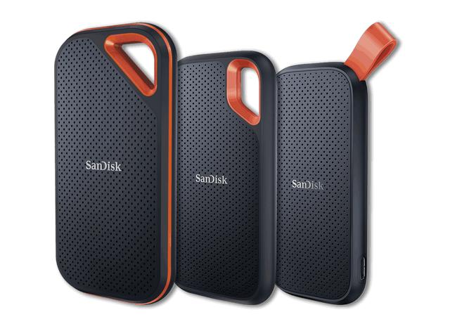 < 从左依次:闪迪至尊超极速移动固态硬盘Pro版、闪迪至尊极速移动固态硬盘卓越版和闪迪移动固态硬盘 >
