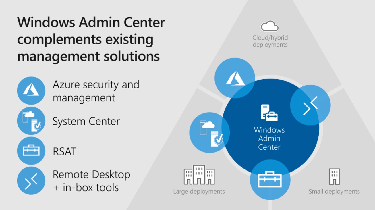 首先,Windows Admin Center是一个在企业本地部署的、基于浏览器的管理软件,主要用于管理Windows Server、集群、HCI超融合基础设施以及Windows 10 PC等设备。Windows Admin Center对于广大的系统管理员来说是一个非常熟悉的管理工具,Windows Admin Center可管理Azure Stack HCI、Windows Server 2019、Windows Server 2016、Windows Server 2012 R2、Windows Server 2012、Windows 10等多种版本的基础设施,同时还可以通过Windows Admin Center gateway管理更多的基础设施。