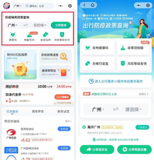 如果还不清楚出行往返各地的防疫政策,那就赶紧用“腾讯出行服务”小程序搜一搜吧。