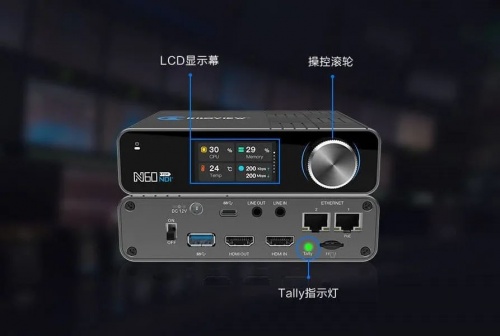 升级要点:此次,N60升级到4K HDMI,同时支持NDI和NDI|HX,可编可解,随着N6的退市,N60将是唯一一款同时支持NDI和NDI|HX的产品。更值得注意的是,N60是首款支持4K USB视频源直接转成NDI的设备,极大方便高清摄像头应用场景的NDI转换。此外,N60嵌入了此前从未采用过的彩色LCD屏幕,并引入滚轮调钮,极大方便了现场技术人员对于重要参数的控制和调整。
