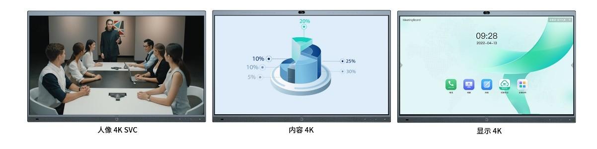 从芯片到屏幕到软件设计均达到4K效果,保证让画面更清晰、细节更出众,色彩更丰富,视频更流畅,临场真实感更强,帮助用户开“真4K会议”。