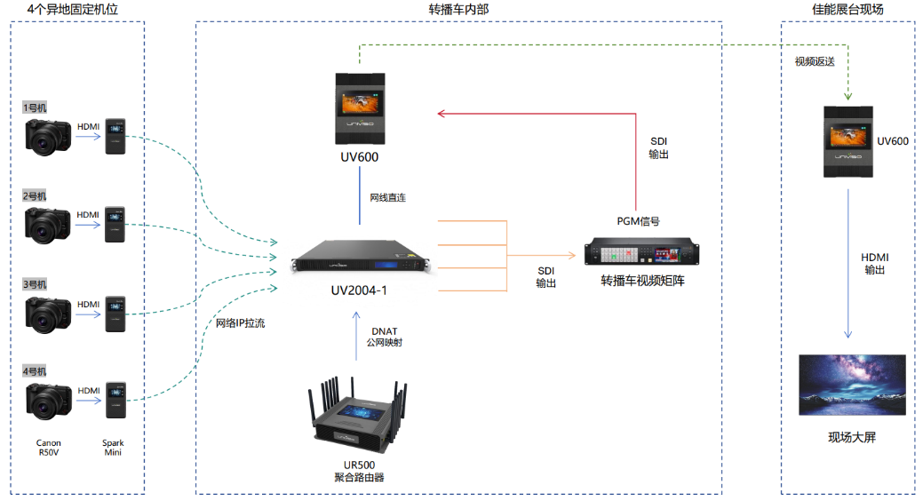 这套解决方案不仅打破了传统直播对场地和设备的限制,更通过标准化硬件组合与灵活的网络适配能力,降低了多机位直播的技术门槛。这种轻量化部署的模式,为大型展会、体育赛事等需要跨空间协作的场景提供了可靠的解决方案。特别是系统对有线、无线网络的智能适配特性,使其在应急直播、户外活动等网络条件复杂的场景中展现出独特优势,该解决方案也可延伸至文旅直播、企业产品发布会、远程教育等多元化领域。