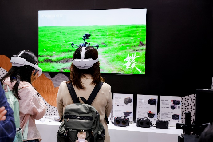 VR技术的飞速发展为人们带来了更为震撼的沉浸式视觉体验,佳能也早在2021年就开始了在该领域的布局,推出了EOS VR系统(EOS VR SYSTEM)。EOS VR系统是佳能首个由单支VR镜头和可换镜相机实现VR拍摄的创新解决方案,在提供高画质的同时,大幅度简化了3D VR视频的生产制作流程。在佳能展台,观众可以体验用EOS R5 C搭配RF5.2mm F2.8 L DUAL FISHEYE、EOS R7搭配RF-S3.9mm F3.5 STM DUAL FISHEYE拍摄3D VR视频,还可以用EOS R50 V搭配RF-S7.8mm F4 STM DUAL体验拍摄空间视频,再通过VR头显等设备观看自己拍摄的画面,感受到身临其境的影像效果。