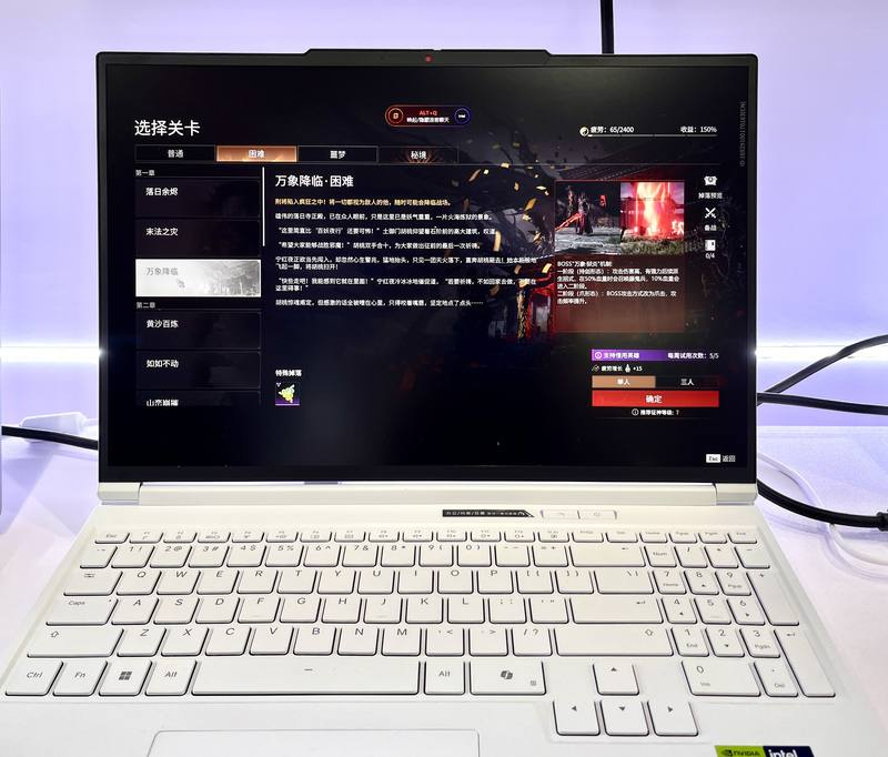 展台上亮相的AI高静游戏本——机械革命极光X Pro 吸引了游戏玩家的注意,其搭载的基于英特尔XPU的AI游戏助手,为玩家提供全程攻略指导与情绪陪伴,打造出更具沉浸感与互动性的游戏体验。
