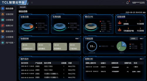TCL空调依托自主研发的物联网大数据分析平台及专业售后技术体系,创新打造贯穿产品全生命周期的AI主动关怀服务体系。通过设备运⾏数据实时监测与用户行为模式深度学习,建立空调健康度预测模型,在用户端、客服端和工程师端等实现从故障修复向预防性维护的转型突破。同时,围绕全生命周期的智能主动服务,公司依托工业物联网、数字孪生和人工智能技术打造的IOT远程诊断平台,形成了涵盖智能检测、智能诊断、能效评估、预测性维护、产品全生命周期的节能管理和智能运维管理看板等6大核心技术模块。利用广泛部署的传感器网络,平台可实时采集空调温度分布、压力梯度等数据,结合AI算法实现故障精准识别。