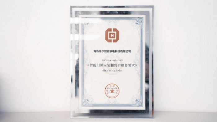 10月10日,在中国五金制品协会第九次团体标准会上,海尔智能门锁作为主要起草单位参与制定的《智能门锁安装和售后服务要求》正式发布。海尔智能门锁获得该团体标准的主要起草单位认证,带领行业迈向高质量、有序化发展。