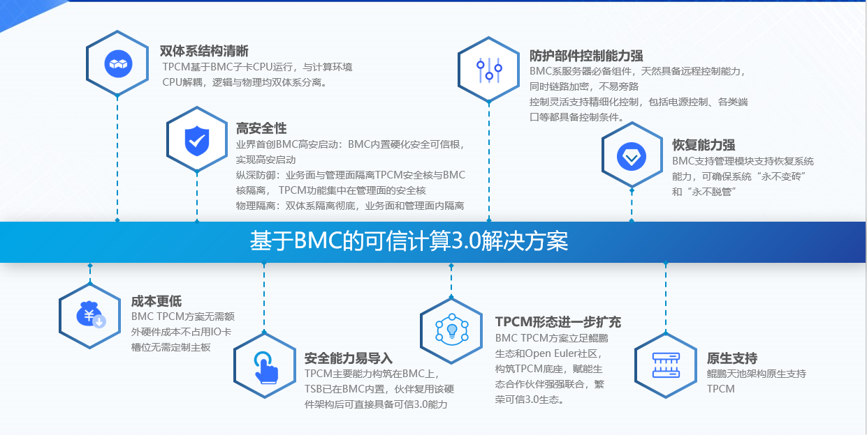 n 基于鲲鹏BMC可信计算方案实现一体机安全启动、运行、运维、更新过程可控可管。