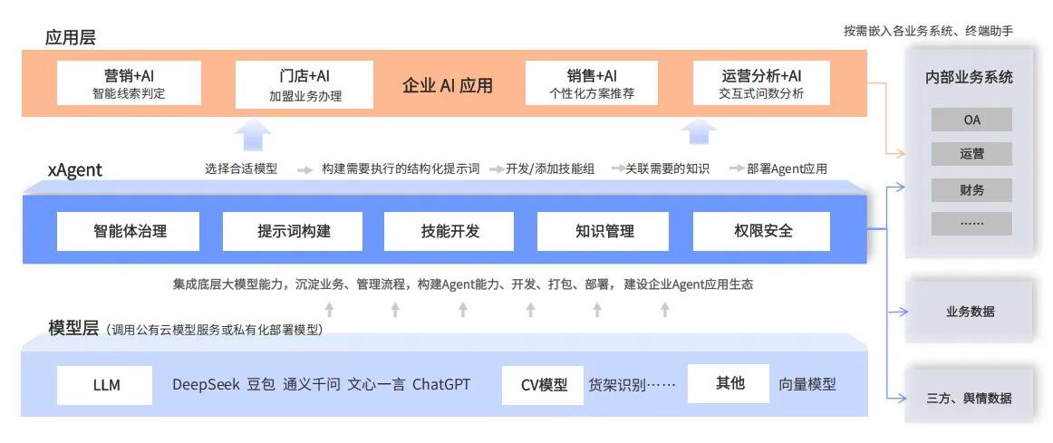 在2023年,当GPT刚做出API的架构,就让云徙科技认为以自然语言辅助的智能体平台成为可行的方案。因此,在DeepSeek出现后,云徙科技便通过深度融合DeepSeek等大模型的自然语言理解与推理能力,正重新定义营销数字化领域人机协作的边界。