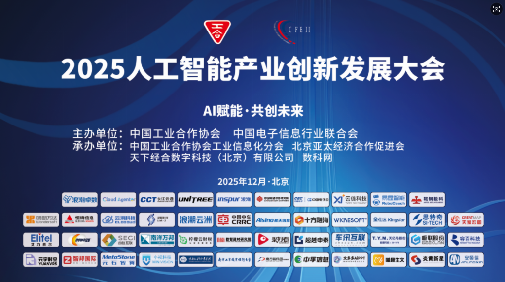 12月16日-17日,由中国电子信息行业联合会、中国工业合作协会联合主办的“2025人工智能产业创新发展大会”在北京举行。作为人工智能领域最具影响力的年度盛会之一,本次大会以“AI赋能·共创未来”为主题,吸引了近千名行业顶级专家、院士、协会领导及领军企业代表出席,共同探讨以人工智能赋能高质量发展,推动技术创新与产业发展。