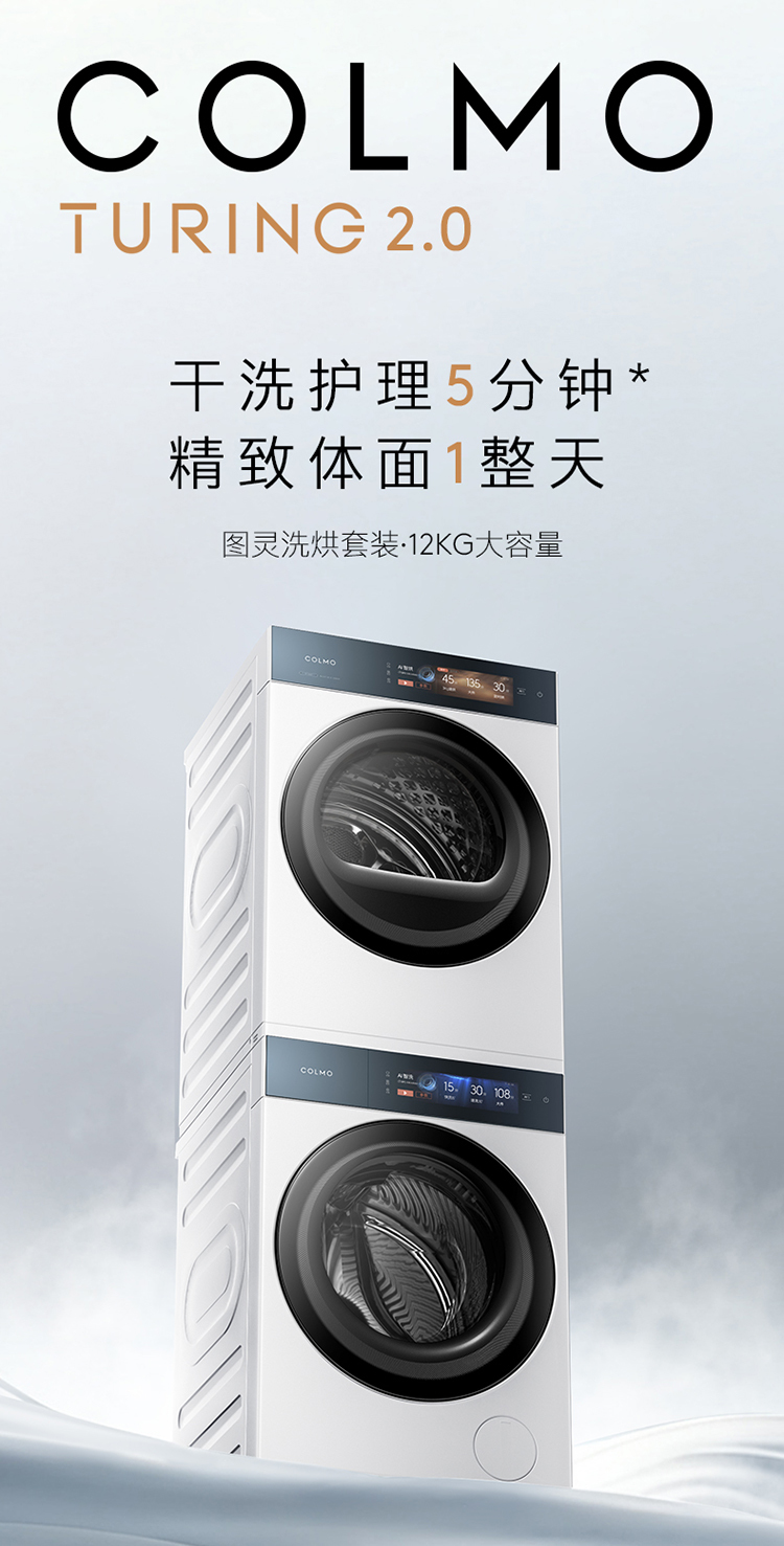 COLMO 作为高端 AI 科技家电引领者,聚焦菁英用户精致洗护需求,将前沿 AI 技术深度融入衣物护理场景。COLMO图灵洗烘套装T1pro凭借多维智投+净护柔洗,AI无线判干+AI续航全变频,以及AI轻干洗3.0技术,实现不同高端面料衣物的AI定制化洗烘与干洗护理,精准破解不同面料个性化洗护需求,为菁英用户带来定制化洗烘新体验,奢享净护品质生活。