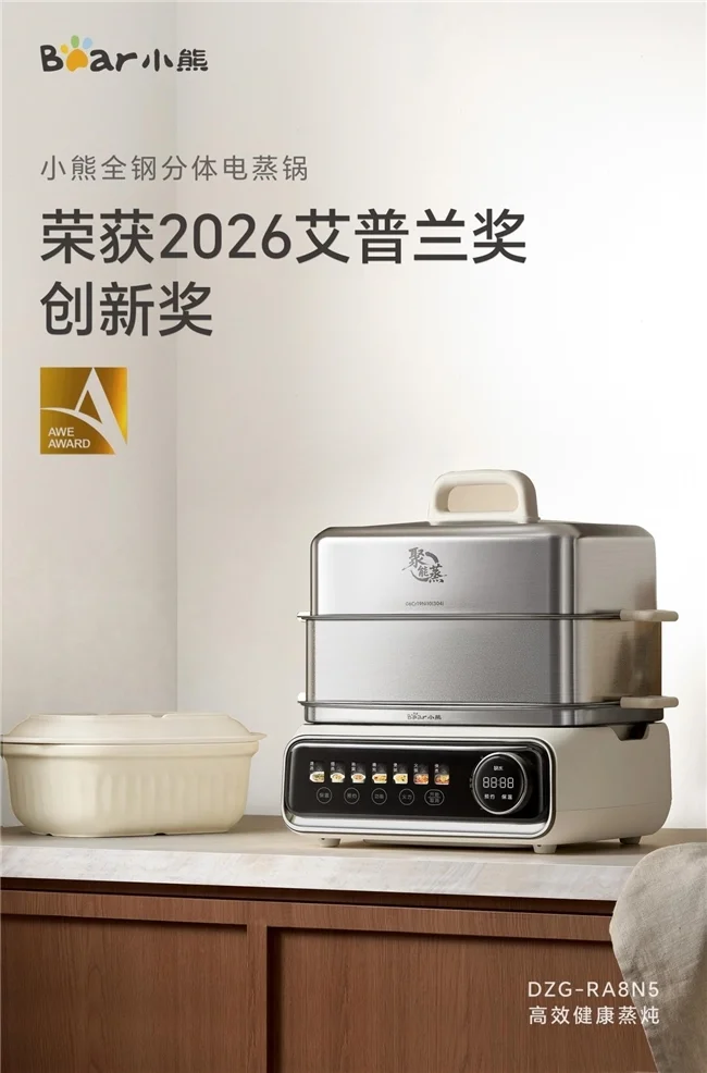 3月12日,2026年中国家电及消费电子博览会(AWE2026)在上海拉开帷幕。在这场汇聚全球前沿科技的盛会上,被誉为全球智慧生活领域“奥斯卡”的AWE艾普兰奖正式揭晓,小熊电器小食光电蒸锅凭借出色的创新实力,摘得2026年度艾普兰“创新奖”。小熊电器此次获奖,不仅源自对产品品质的坚守,更离不开其对用户品质生活的持续探索与深入洞察。