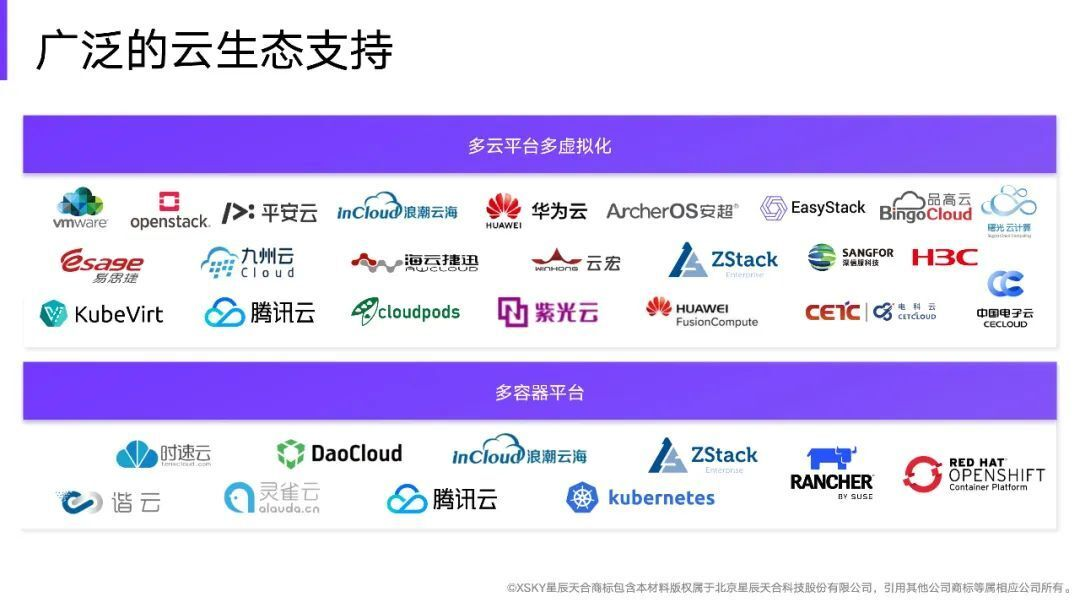中国的云平台厂商众多,但是相对比较封闭,特别是大云厂商,主要支持对接自己的存储。XSKY 作为独立的中立 SDS 厂商,和云厂商的竞争少,冲突少,比较容易和各个云厂商合作,形成良好的开放生态。