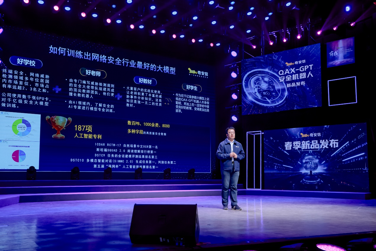 为什么安全机器人能成为顶尖“学霸”?张卓归结了四点原因:好学校、好老师、好教材和好学生。好学校即奇安信在攻防、终端、运营、安服等多领域的市场绝对优势地位,以及业内算力资源最强的基础设施;好老师是奇安信云集了一大批业内顶尖的安全专家,以及大量懂安全的AI专家;好教材不仅包括奇安信拥有的数百PB高质量安全数据,还包括大量客户的实战化应用中积累了丰富的威胁分析知识;而好学生,指的是奇安信安全机器人依托的千亿级参数大模型,等等。