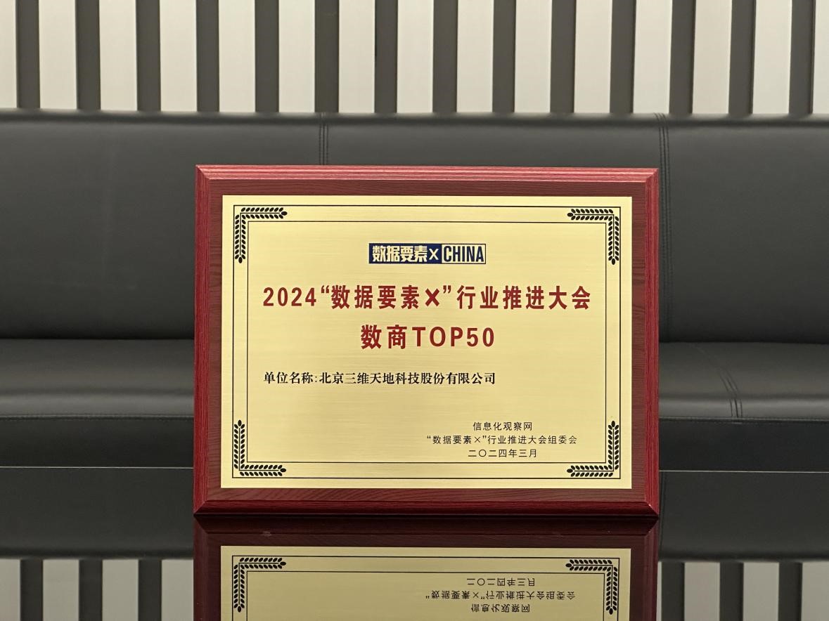 近日,北京三维天地科技股份有限公司(简称:三维天地 SZ301159)应邀出席2024 首届“数据要素×”行业推进大会。凭借在数据管理产品应用与创新的综合优势,三维天地荣登2024“数商TOP50”榜。同时,公司实施的某重卡企业数据治理平台建设项目入选2024“数据要素×”典型案例50佳。