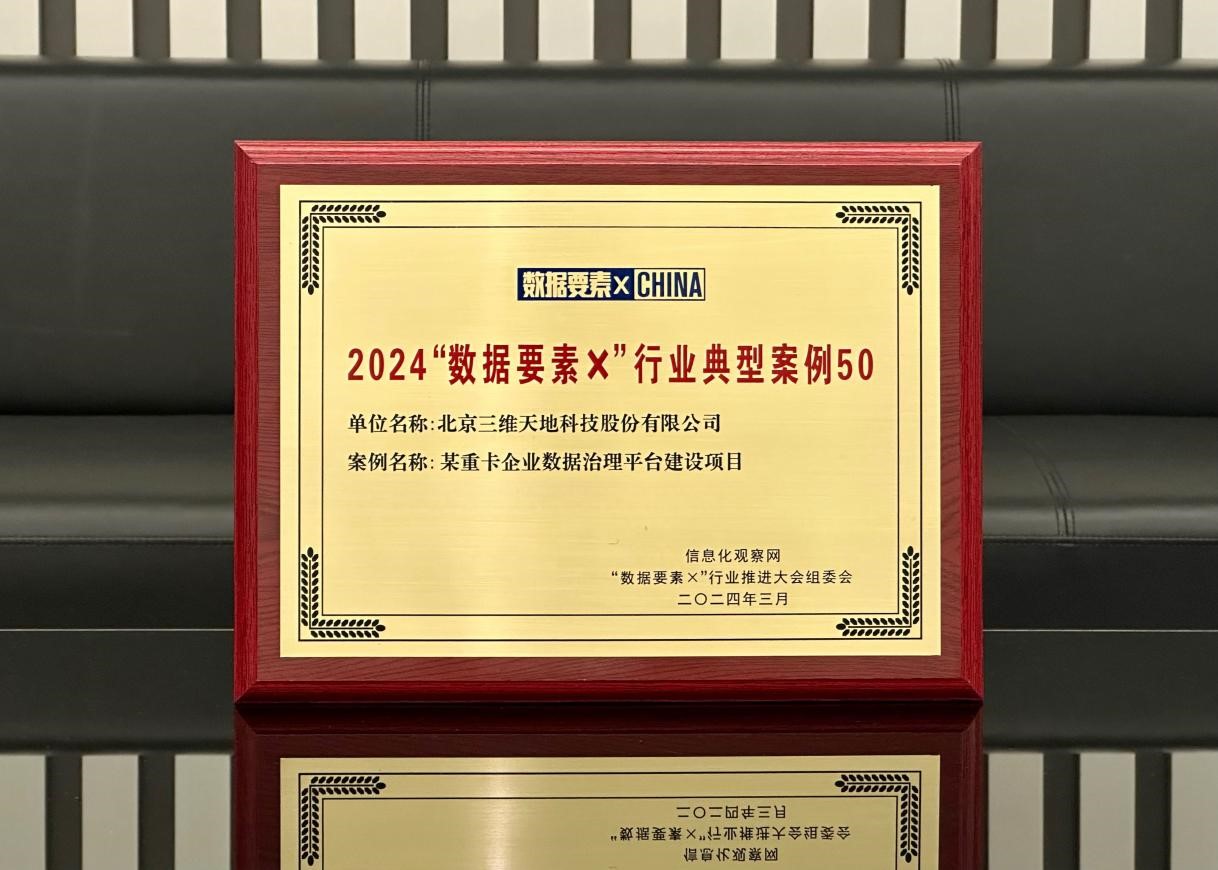 此外,大会集中展示并遴选出一系列创新技术、产品、解决方案等相关智力成果,为数据要素在各行业的创新应用和实践提供了宝贵参考,同时评选出一批在行业内具有领先性的数据要素落地应用成功案例。其中,由三维天地实施的某重卡企业的数据治理平台建设项目成功入选2024年度“数据要素×”50佳典型案例。