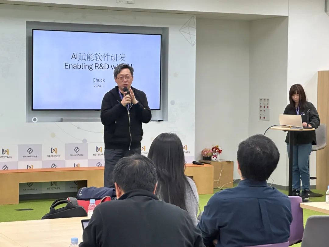 3 月 22 日下午,「智研社-The Intelliger」东京站“2024 大模型范式革命与软件研发赋能”技术交流活动在 NETSTARS 东京活动中心圆满举行。活动特别邀请到 NETSTARS CTO,《ChatGPT 驱动软件开发》作者陈斌进行了「如何使用 AI 助力研发工作」的主题分享,CSDN 高级副总裁李建忠也在现场做了「基于大语言模型的智能化新范式」的主题演讲。同期到场的还有东京华人技术圈的 KOL,技术大牛,行业专家等一起交流思想、分享经验。智研社东京站的活动推动了华人 AI 技术交流新热潮。