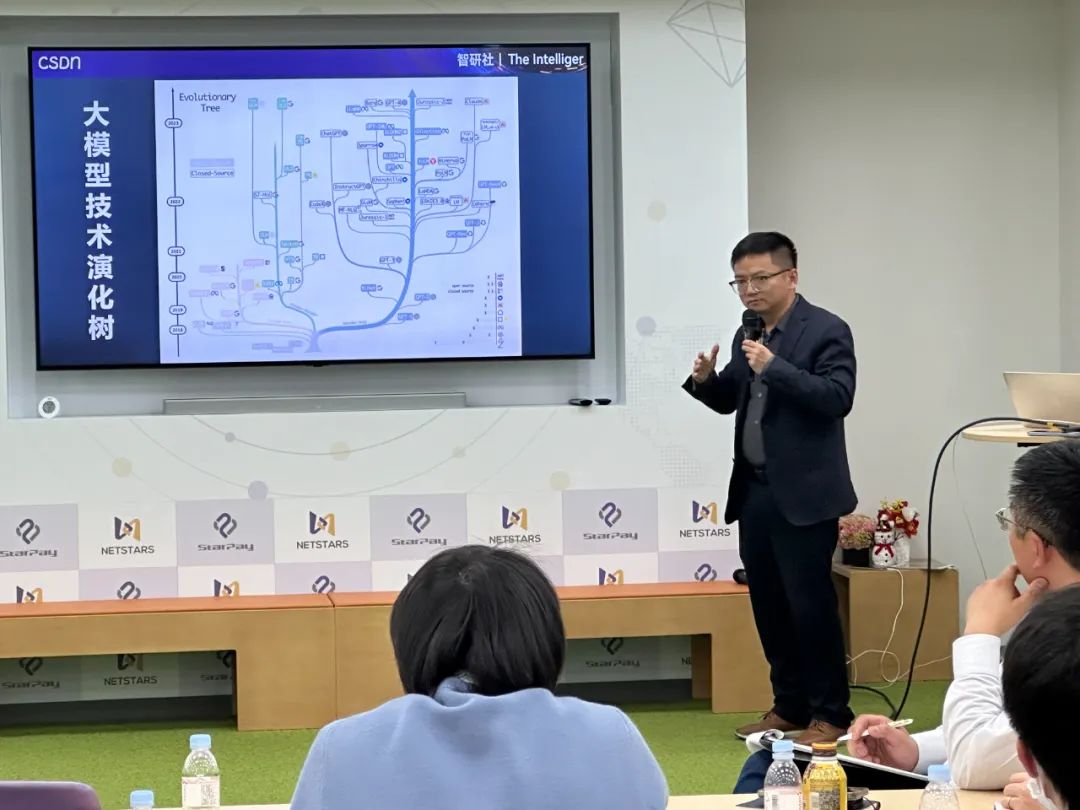 现场,NETSTARS CTO,《ChatGPT 驱动软件开发》作者陈斌与 CSDN 高级副总裁李建忠分别做了大模型相关主题分享。