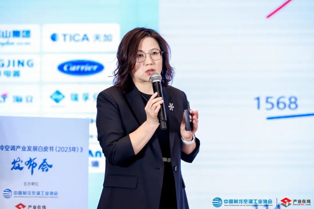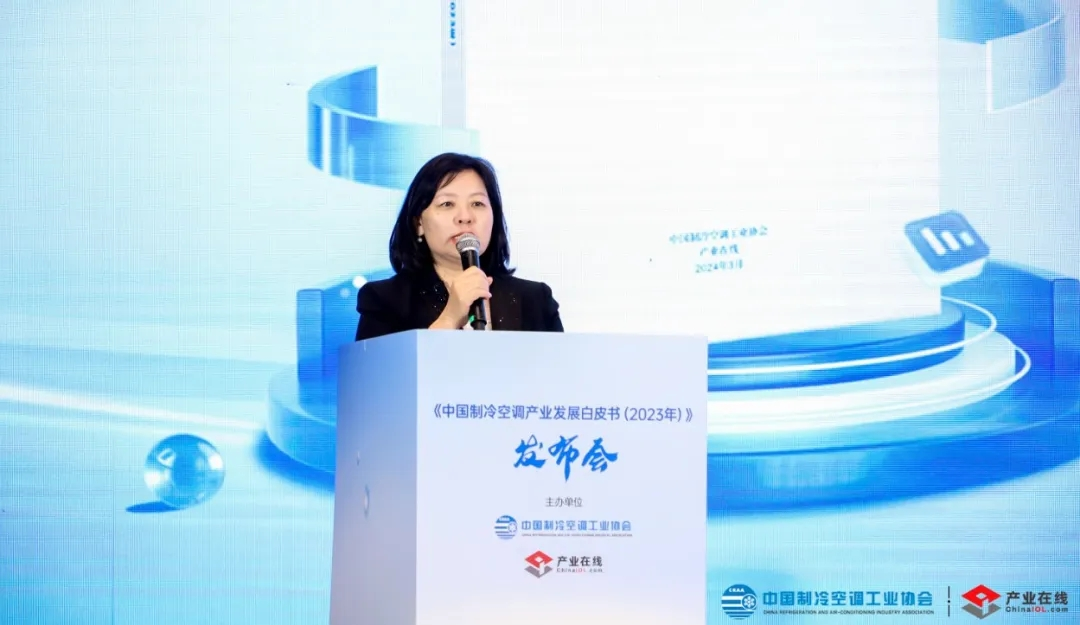 上午的主题分享环节,首先由产业在线董事长杨洁对《白皮书(2023年)》的精华内容做了专业解读。她基于白皮书的数据,对2023年冷暖产业的整体发展做了全面回顾,并从政策、生产、价格等方面介绍了今年的整体开局情况。她表示,2024年的开局情况非常好,虽然发展环境面临巨大的挑战,但是整体产业在朝着维稳向好的方向发展,鉴于国内外产业环境存在诸多不确定因素,总体对今年的行业发展做出了谨慎乐观的预判。