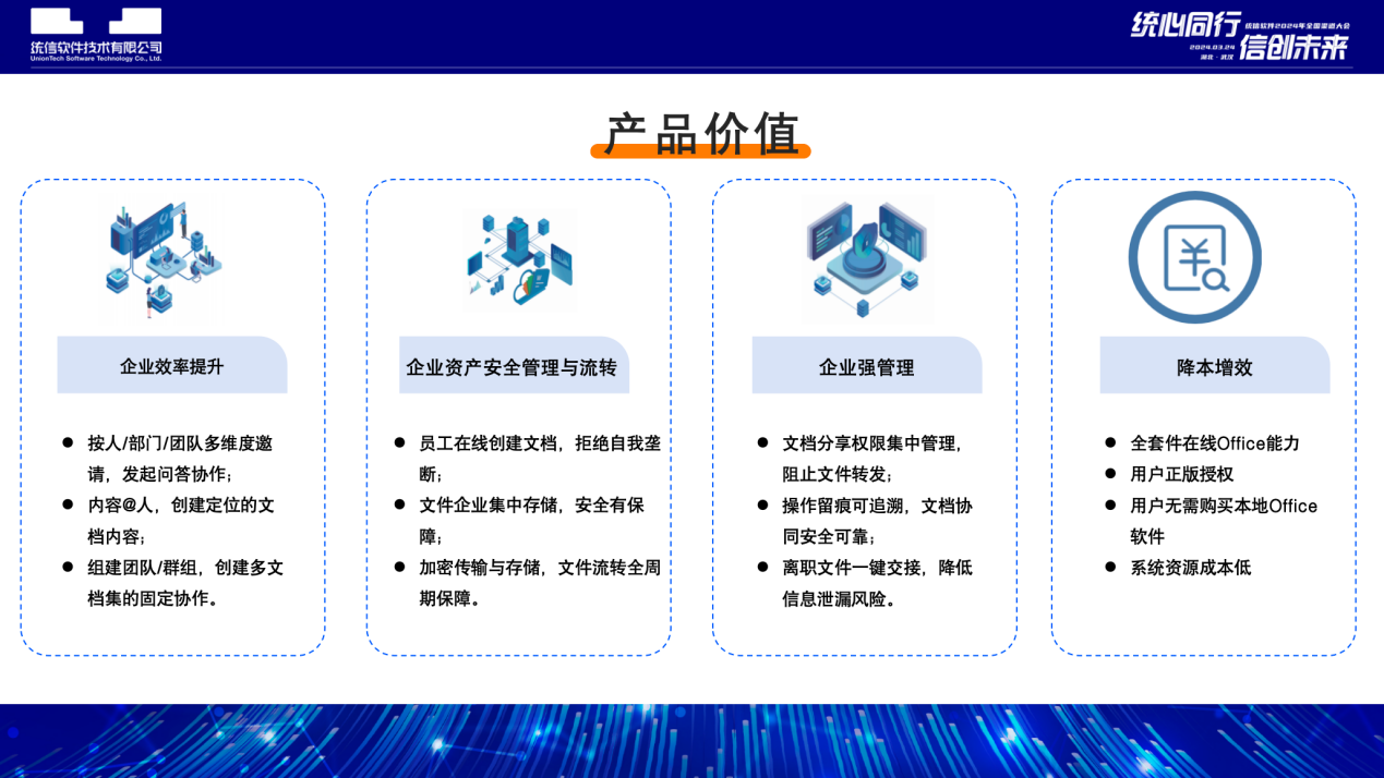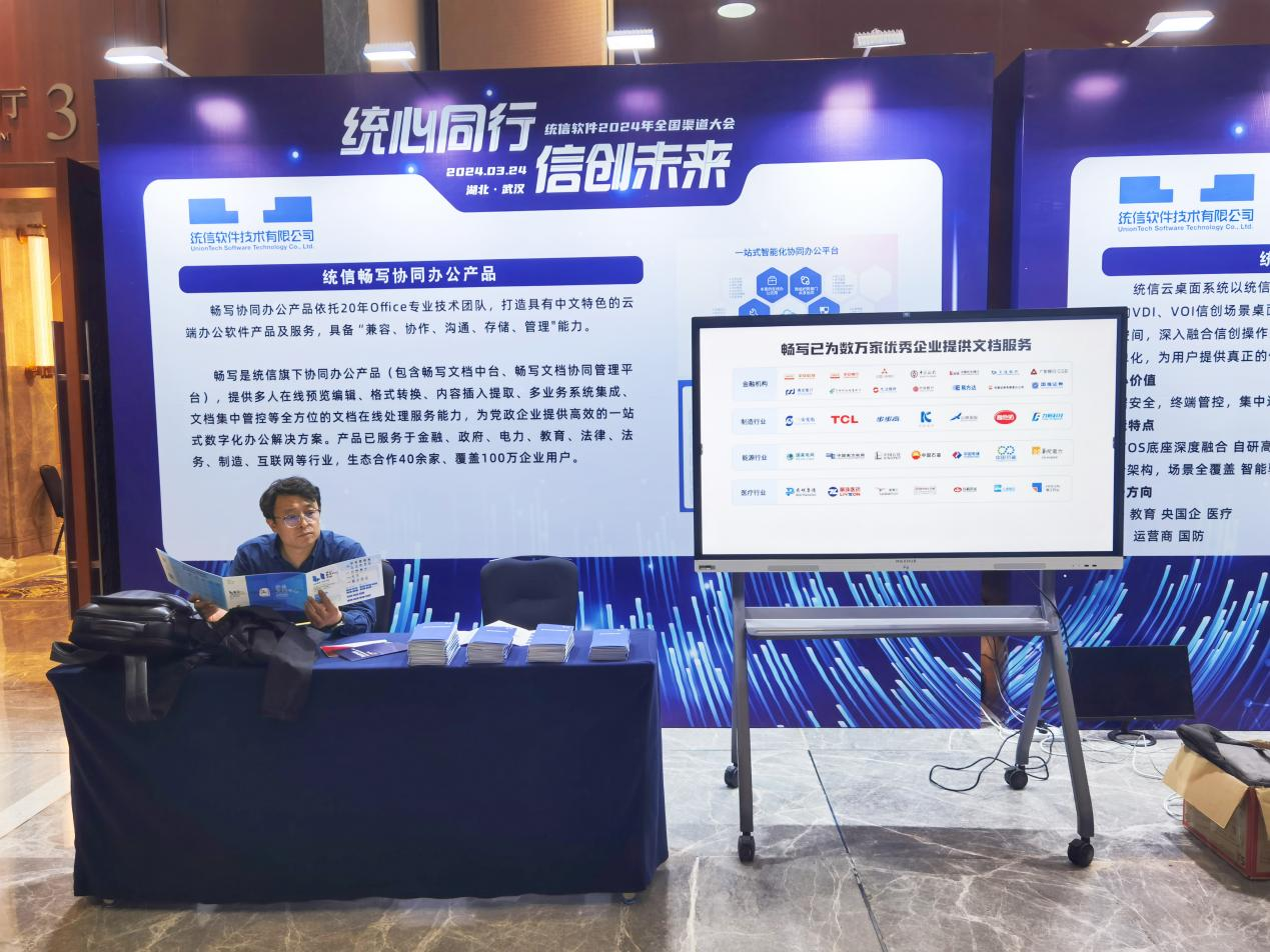 近日,以“统心同行 信创未来”为主题的统信软件2024年全国渠道大会在武汉隆重召开。来自全国各地的顶尖合作伙伴齐聚一堂,共同探讨产业变革、前沿技术、核心产品以及渠道战略等核心议题。在这场盛会上,统信畅写产线总经理史周波先生代表畅写,发表了“畅写未来:新品发布与共创之旅”主题演讲。本次演讲分为四个部分,全面展示了畅写在协同办公领域的最新成果和未来展望。