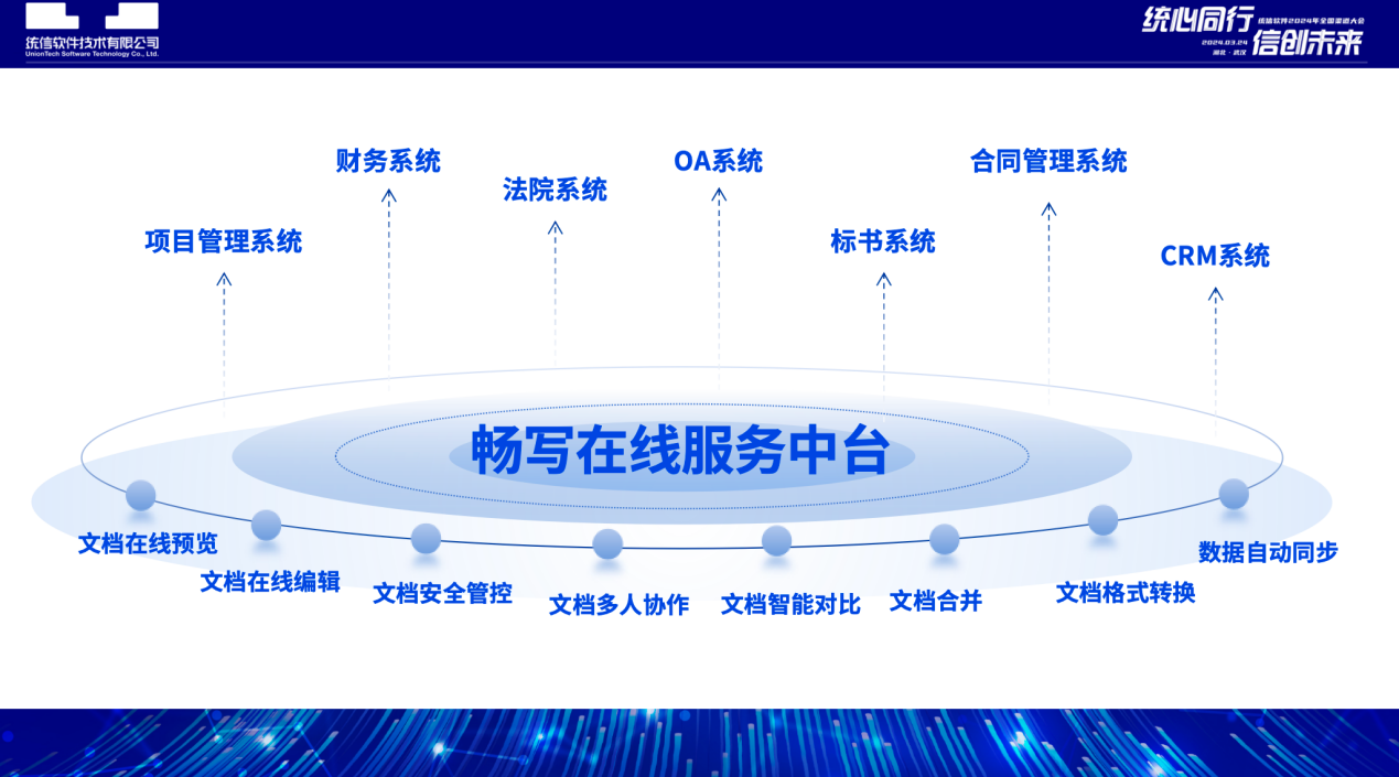 1.畅写文档中台:通过标准SDK及API与企业各类业务系统完成对接,即可快速实现文档在线编辑、文档预览、格式转换、数据同步、数据安全管控、文档自动化编辑等服务。无需安装本地Office及插件,打开浏览器即可使用。