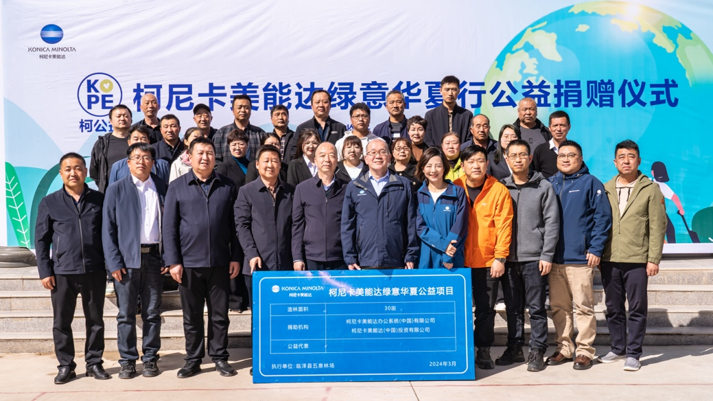 近日,柯尼卡美能达办公系统(中国)有限公司、柯尼卡美能达(中国)投资有限公司(以下统称为“柯尼卡美能达”),与甘肃省经销商合作伙伴代表、行业知名媒体代表组成志愿者团队,一同赶赴甘肃省张掖市五泉林场举行了“2024柯尼卡美能达绿意华夏公益行”活动,并与甘肃省林业和草原局总工程师刘峰先生、临泽县委常委、县政府副县长(常务)任刚先生、临泽县自然资源局局长李建荣先生、五泉林场场长李军元先生,共同出席了柯尼卡美能达认养公示牌揭牌仪式。