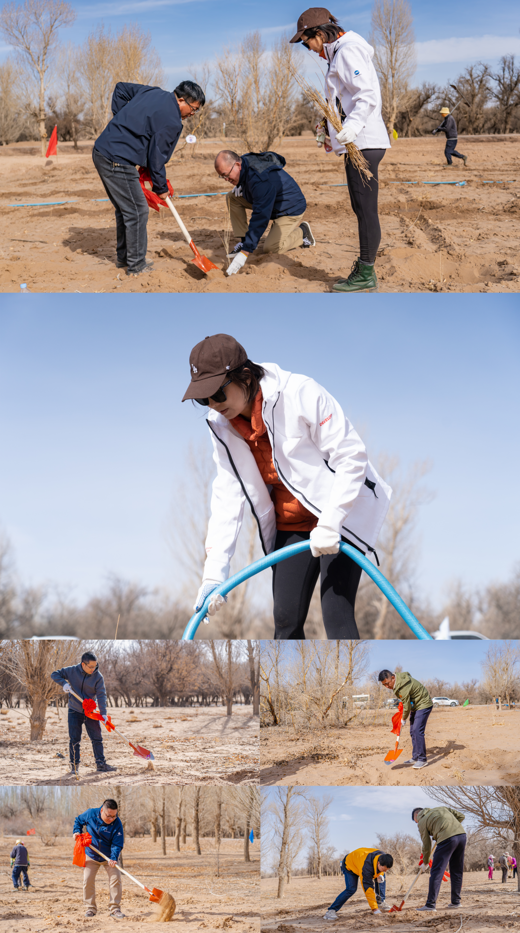 春季适宜播种新植,柯尼卡美能达公益团队在林场工作人员的引导下,前往五泉林场奠基柯尼卡美能达认养公示牌并将梭梭树和花棒等耐旱植物精心栽种于土壤中,以实际行动种植绿色希望,灌溉生态绿洲。
