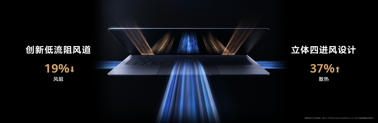 为确保能够持久、畅快地释放性能,华为MateBook X Pro采用了全新的鲨鱼鳍散热系统。该散热系统由华为2012实验室、横滨研究所、基辅研究所联合研制,在建模设计、场景仿真、材料工艺以及数学算法等多个方面实现全面突破,相较前代产品整体散热能力升了37%。