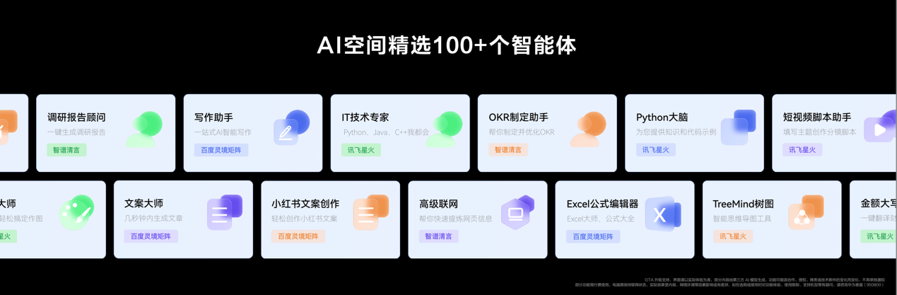 华为MateBook X Pro首发搭载华为AI空间功能,通过AI空间用户可以一键直达丰富的AI应用,更支持100+个智能体,是一站式AI能力聚合入口,能让代码编程、PPT制作、论文阅读排版、收集学习资料、视频图片创作、旅行规划等场景更高效,更便捷。
