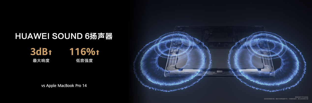 华为MateBook X Pro搭载了定制的高低音分频6扬声器系统,音质表现非常优秀,支持业界首创的“智慧混音大师”技术,让音乐变得更富有层次感和空间感。无论是音符的跃动还是旋律的流淌,都带来一种身临其境的感觉。