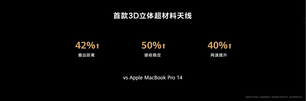 在网络连接能力上,华为MateBook X Pro颠覆性地采用了3D立体超材料天线技术,将传统的2D平面超材料升华至强大的3D立体腔体天线,具备最远420米的远距离连接能力,可为用户带来更远、更稳定、更快速的上网体验。