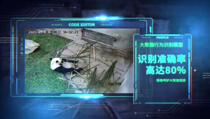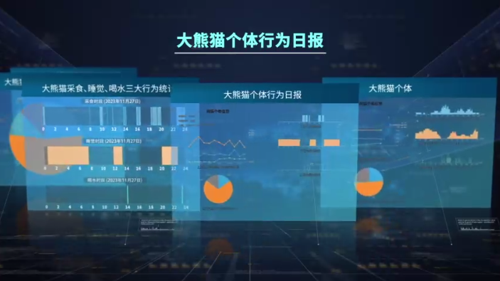广工学生、“AI+大熊猫保护”项目组组长蓝学深介绍,项目组开发了智慧管理系统,部署了大熊猫行为智能识别模型,可识别大熊猫行为并生成日报、周报、月报、年报等,工作人员看一眼报告就能掌握大熊猫吃、喝、睡的基本情况。