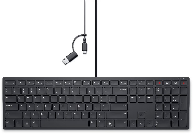 · 适用于Zoom和Microsoft Teams的戴尔有线协作键盘(KB525C)具有专门用于让用户在电话会议期间“无懈可击”的按键,如麦克风静音/取消静音、视频开/关、屏幕共享和聊天等。