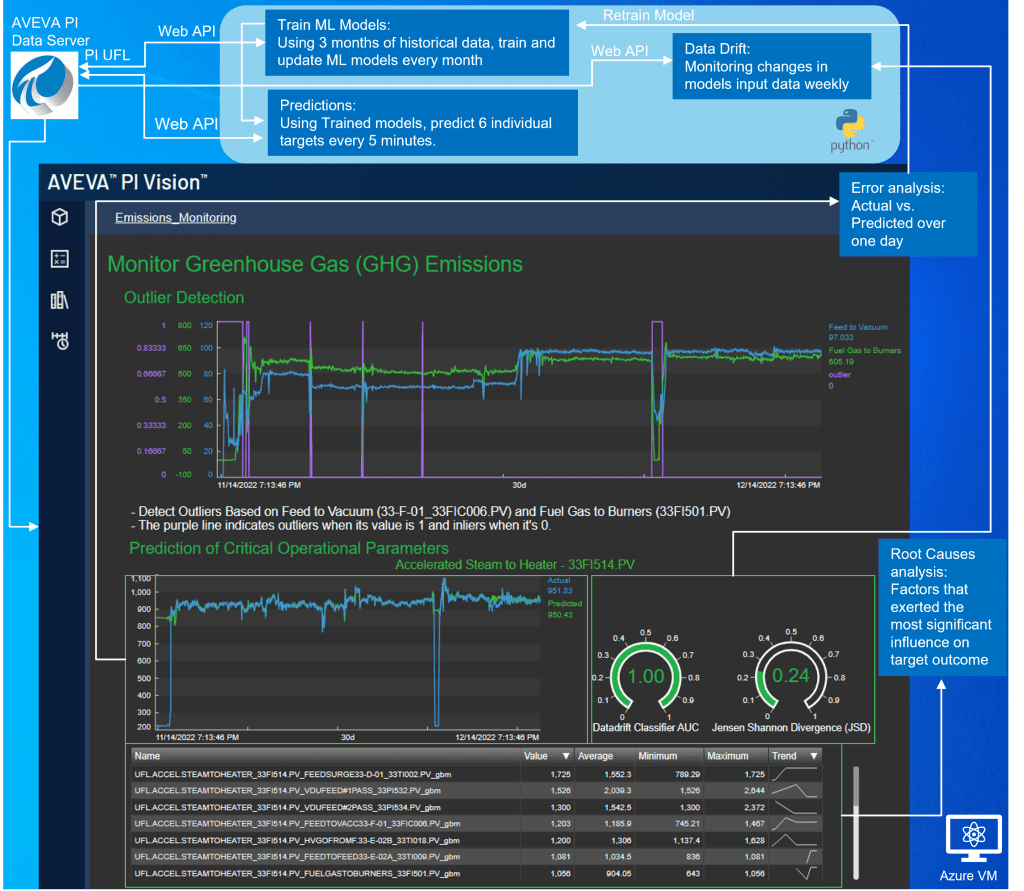 本用例展示了一种创新的ML方法,可降低能源和化学工业对环境的影响。通过将复杂模型与AVEVA PI System运营大数据管理平台集成,该项目能够: