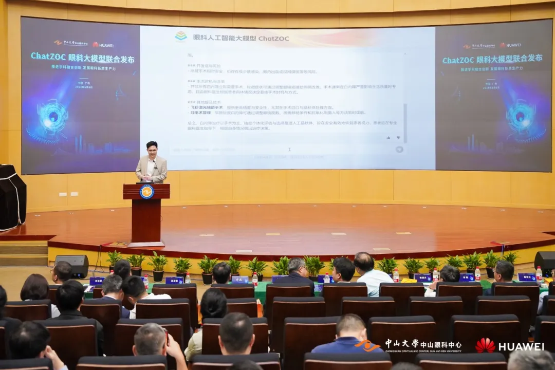 中山大学中山眼科中心是国家卫生健康委属委管唯一的眼科专科医院,眼病防治全国重点实验室依托单位,是中国唯一的世界卫生组织眼健康与视觉合作中心、中国唯一的国际医学学术组织总部所在地(亚太眼科学会、亚非眼科学会亚洲办公室)。近年来,人工智能大模型在数据、算法和算力等关键要素的共同推动下,从专科领域“专才”转变为通用领域“通才”,医学人工智能发展迎来新奇点,开启新范式。中山眼科于2023年3月领携ChatZOC眼科大模型国产化研发,并于同年12月,与华为启动联合研发,合作攻关破解技术难题。